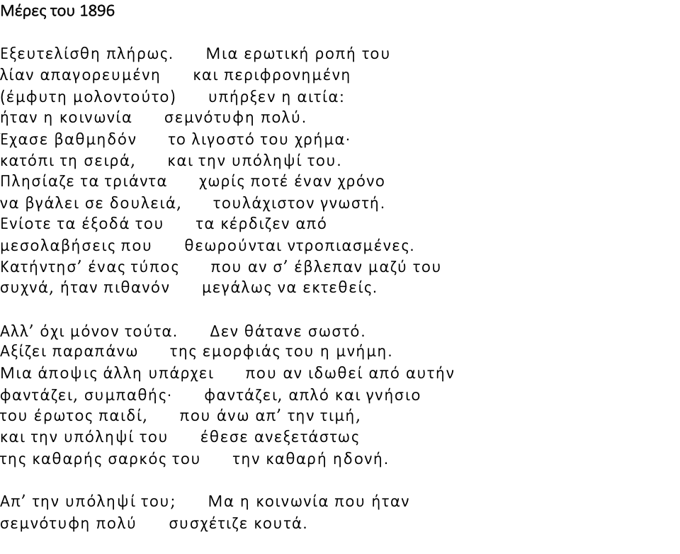 The hall was alive with dancing, but in the murky smoking room, sat some men who were not dancing. The young men had white flowers in their buttonholes; the older ones were wearing insignia. In a corner of the sofa sat a man a bit by himself; he sat quietly and smiled as one who had just swallowed a happy dream. His face was tanned, but his forehead was white. He was dressed as properly as anyone else, and he also had a white flower in his buttonhole. But his left hand, which hung down over the sofa’s arm, was tattooed with a blue anchor.